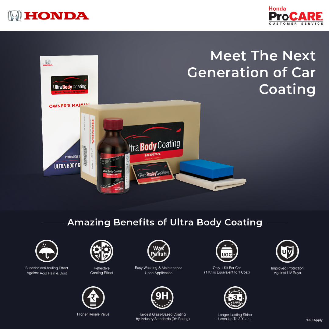 The Ultra Body Coating service will be available across all Honda dealerships in the country starting at a price of Rs 28,900 and can be applied to all Honda models.